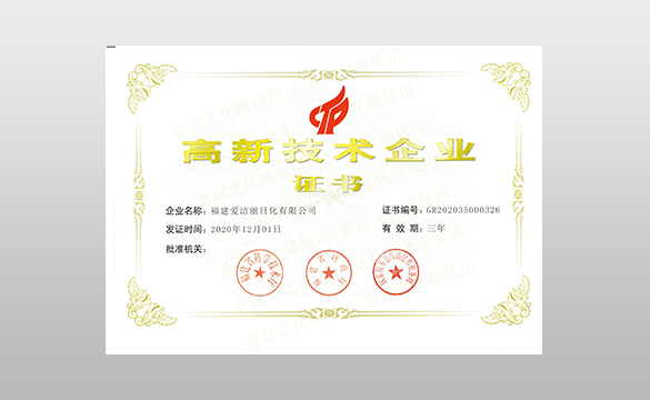 歷經二十幾載的發展,愛潔麗已獲得國家級高新技術企業,福建省科技型企業、福建省專精特新中小企業等榮譽稱號,并通過了GMPC&ISO22716國際認證,ISO9001國際認證,HALAL清真認證,為產品走向全球市場奠定了堅實基礎。