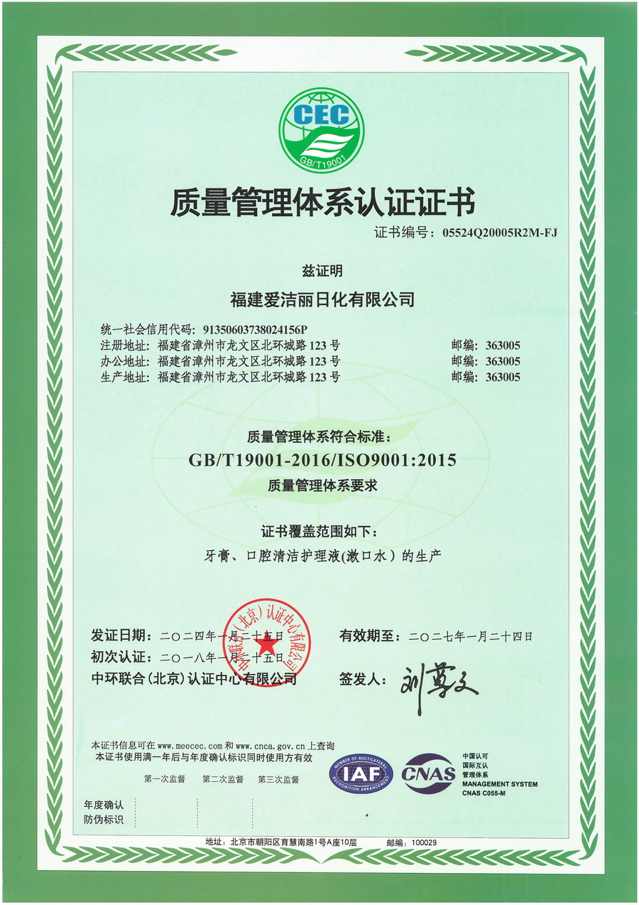 ISO9001體系認(rèn)證證書(英文)202401-202701